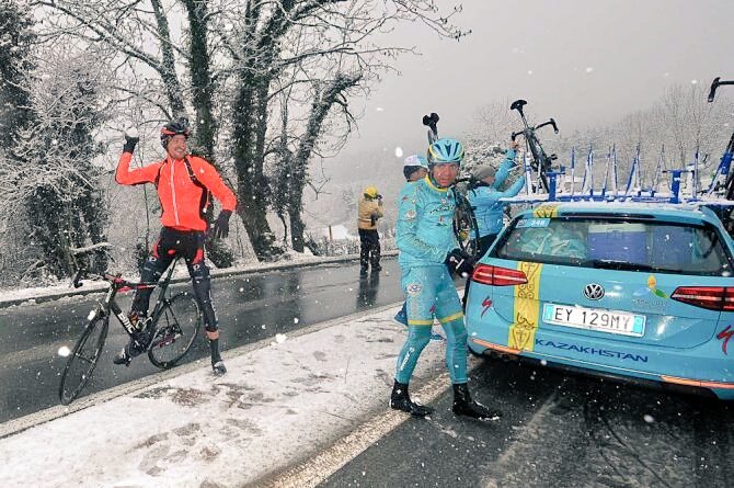Otkazana etapa posle 100km pošto je bilo više za sankanje nego za vožnju