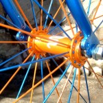 -Prednji točak nema uprepletane žbice, već idu ravno od glave ka felni. Redosled pletenja je bio sledeći, jedna žbica plava, druga narandžasta i tako do kraja. Jako lepo i neobično.